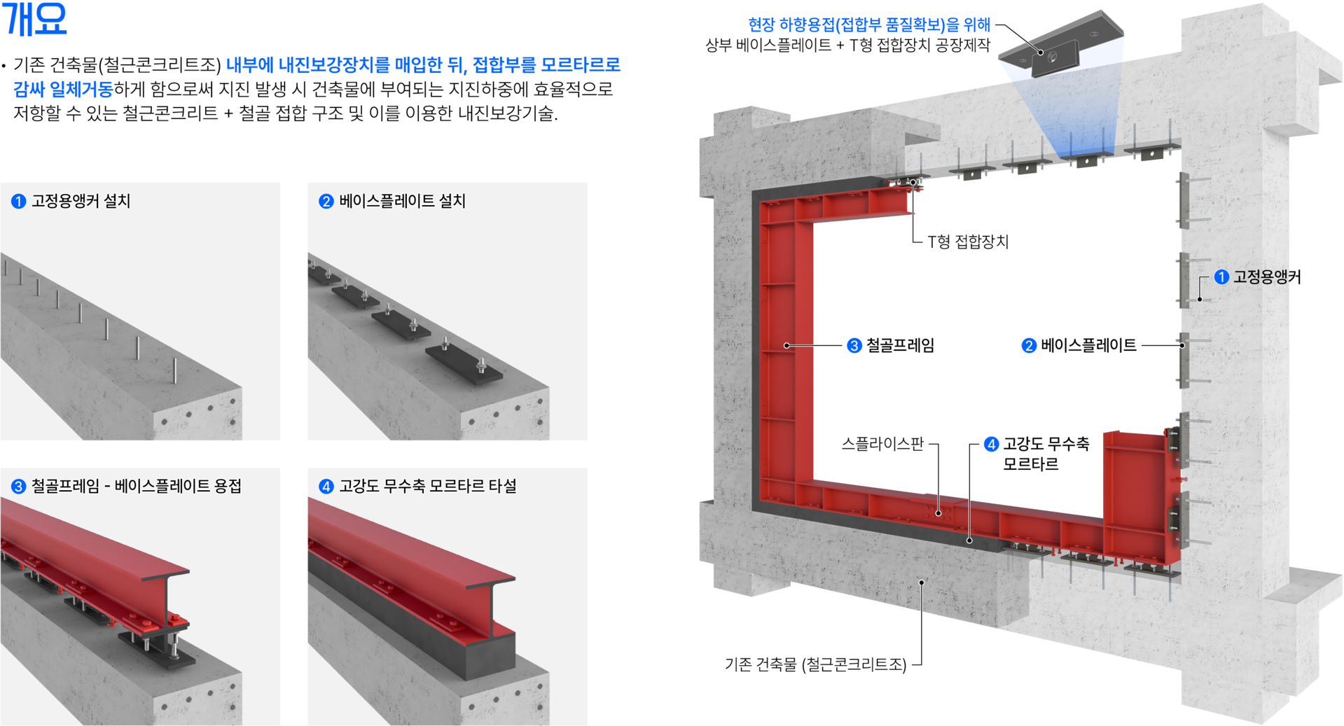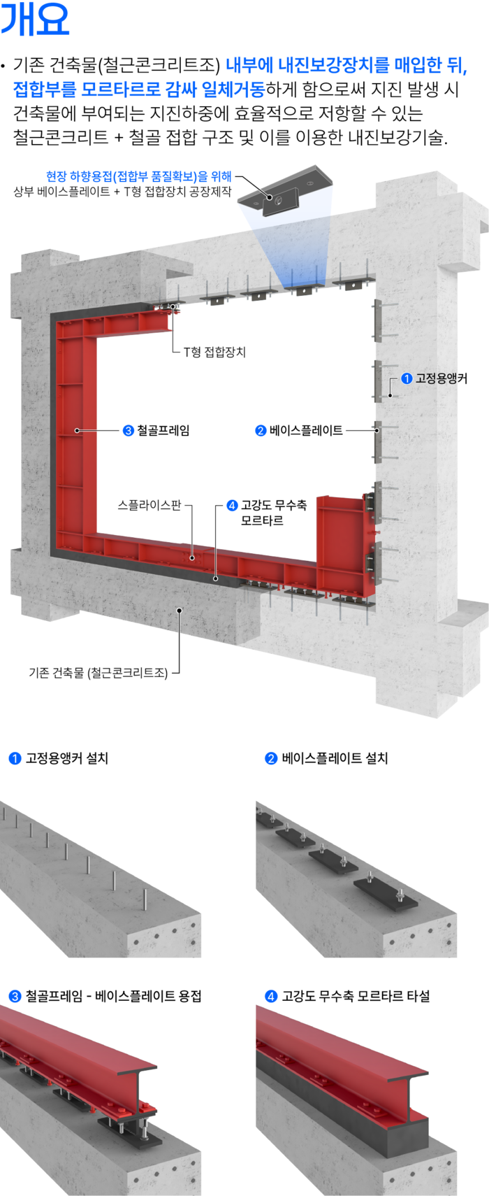 SRC 단면증설 철골프레임 내진보강기술 구성